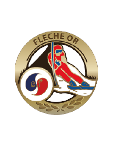 Enchaînement en ski alpin d’un parcours technique de différents modules comprenant des whoops, tables et virages relevés sur une pente d’environ 15° et de 700 m de long.